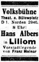 Die Volksbühne E. V. Berlin sichert jedem Mitgliede
