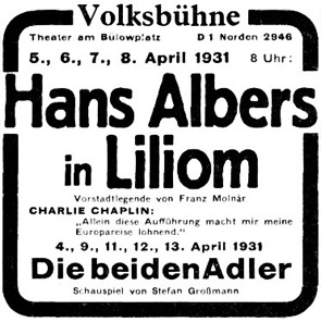 March 26, 1931 at the Ufa-Palast am Zoo in Berlin.