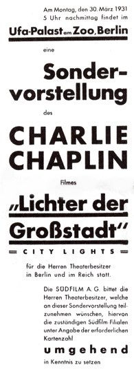 Reprinted in Wolfgang Gersch, Chaplin in Berlin, Berlin 1988.