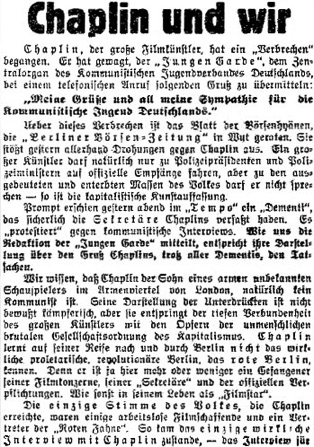 ,Dementi‘, das sicherlich die Sekretäre Chaplins verfasst