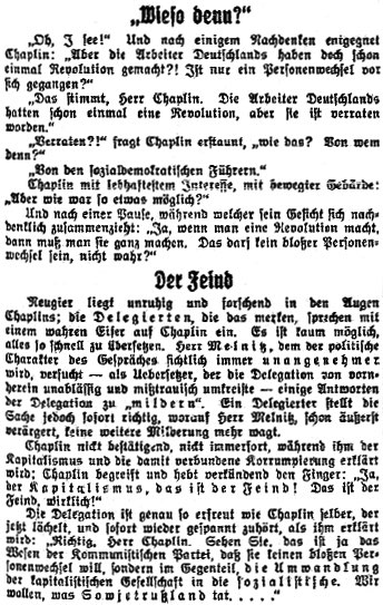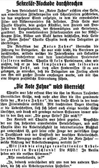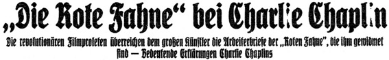 Redaktioneller Inhalt. „,Die Rote Fahne‘ bei Charlie Chaplin.“ (...)