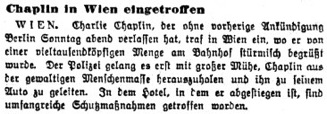 Redaktioneller Inhalt. „Chaplin in Wien eingetroffen