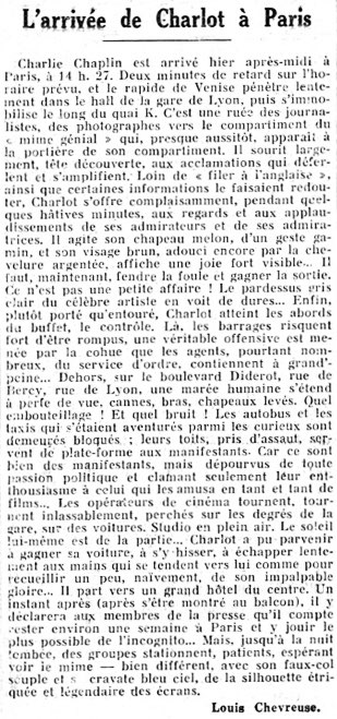 Editorial content. „L‘arrivée de Charlot à Paris.