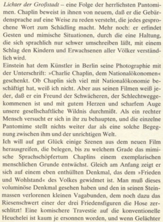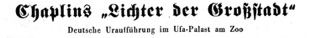 Redaktioneller Inhalt. „Chaplins Lichter der Großstadt