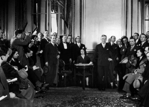Charles Chaplin meets the press at the