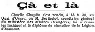 Charlie Chaplin s‘est rendu, à 15 h. 30, au Quai d‘Orsay,