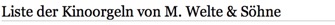 & Liste der Kinoorgeln von M. Welte & Söhne
