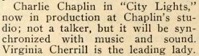 at Chaplin‘s studio; not a talker, but it will be synchronized with