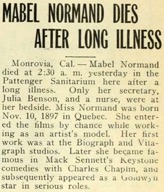 Monrovia, Cal. – Mabel Normand died at 2:30 a. m.