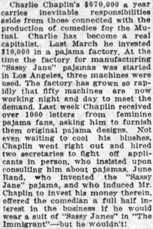 Mr. Chaplin invested $10,000 in a pyjama factory. Now