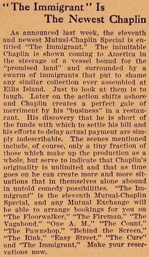 Mutual-Chaplin Special is entitled The Immigrant.