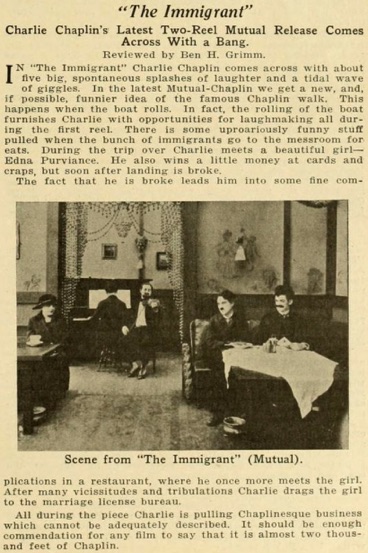 IN The Immigrant Charlie Chaplin comes across with about