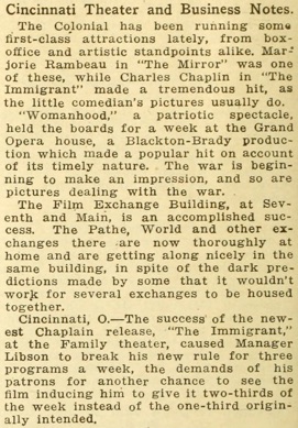 „Cincinnati, O. – The success of the newest Chaplin