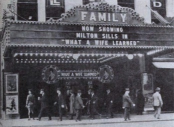 Family Theatre, exterior by day, marquee Milton Sills in „What
