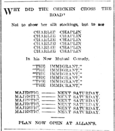 Advertisement. „WHY DID THE CHICKEN CROSS THE ROAD?