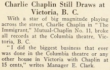Editorial content. „Charlie Chaplin Still Draws at Victoria, B. C.