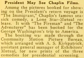Editorial content. „President May See Chaplin Films.
