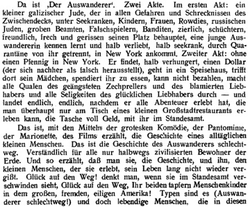 & Da ist „Der Auswanderer“. Zwei Akte. Im ersten Akt: ein kleiner galizischer Jude, der in allen Gefahren und