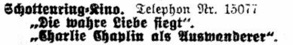 „Charlie Chaplin als Auswanderer“.