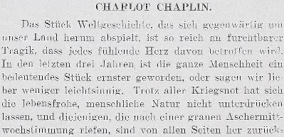 Welcher Beliebtheit sich Charlot Chaplin bei uns erfreut,