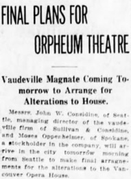 & FINAL PLANS FOR ORPHEUM THEATRE