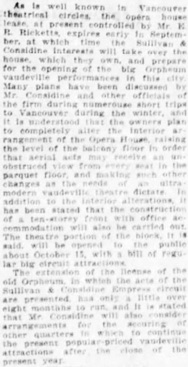 Vaudeville Magnate Coming Tomorrow to Arrange
