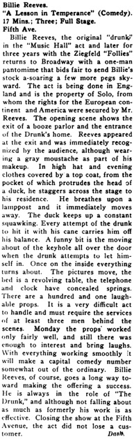 Editorial content. „Billie Reeves, with his new ,Drunk‘ act,