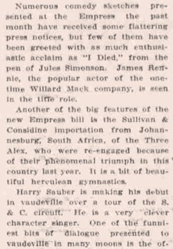 Harry Sauber gibt sein Debüt im Vaudeville