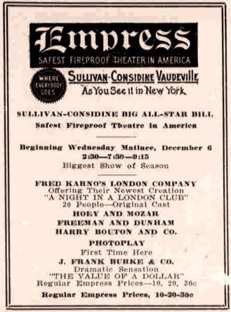 Advertisement. „Empress.“ (...) „Sullivan-Considine Vaudeville