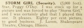 Star, Peggy O`Day. I was stuck up for a picture and was