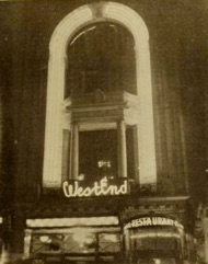 Tube lighting at Westend Theatre‘s facade by night,