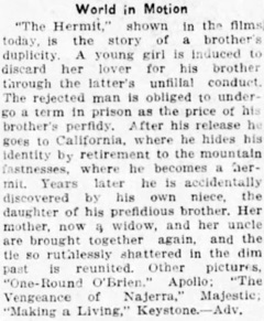 MUTUAL – The Hermit. 2-reel dr., A.; Making