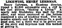 Henry Lehrman, a Keystone director, tipped a §1,500