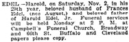 EDEL – Harold, on Saturday, Nov. 2, in his 29th year,
