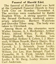 beloved father of Harold Edel, Jr. Funeral services will be held