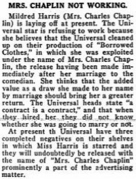 Mildred Harris (Mrs. Charles Chaplin) is laying