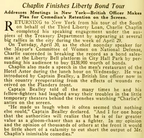 Editorial content. „Chaplin Finishes Liberty Bond Tour