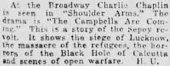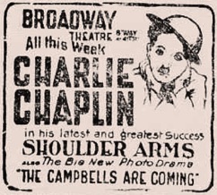 & At the Broadway Charlie Chaplin is seen in „Shoulder Arms.“