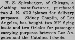 Sidney Chaplin, of Los Angeles, has bought two MF flying boats