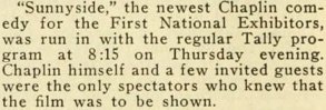 Tally program at 8:15 on Thursday evening. Chaplin himself