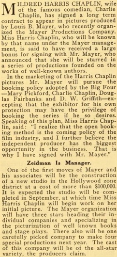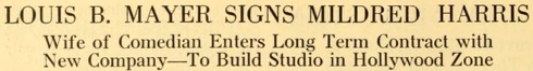 Editorial content. „LOUIS B. MAYER SIGNS MILDRED HARRIS