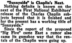Editorial content. „Sunnyside is Chaplin‘s Next.