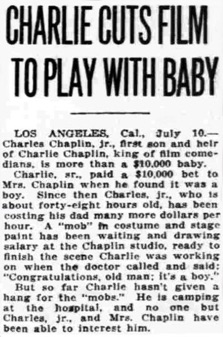 Los Angeles, Cal. July 10. – Charles Chaplin, jr., first son