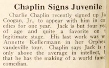Charlie Chaplin recently signed up Jackie Coogan, Jr.,