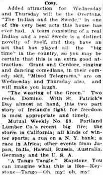 & Cosy Theater – Pendleton, Ore. C. P. Bruce, Manager.
