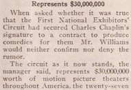Exhibitors‘ Circuit had secured Charles Chaplin‘s