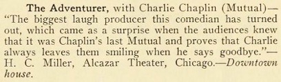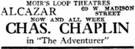 „Now and All Week CHAS. CHAPLIN in The Adventurer“