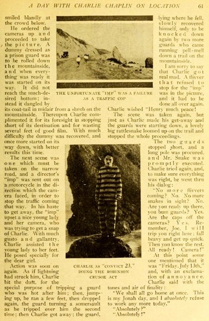 Editorial content. „A Day with Charlie Chaplin on Location