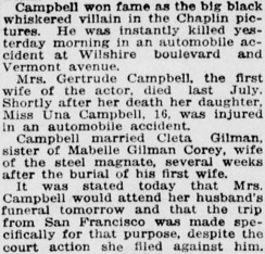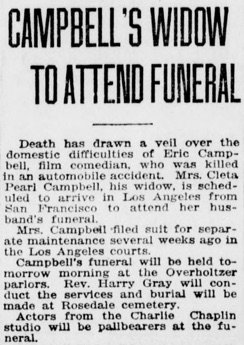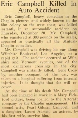 of Eric Campbell, film comedian, who was killed