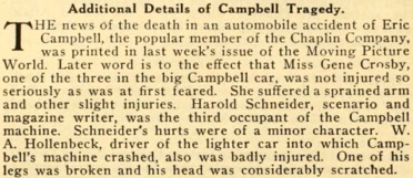 Campbell was instantly killed. Gene Crosby, another